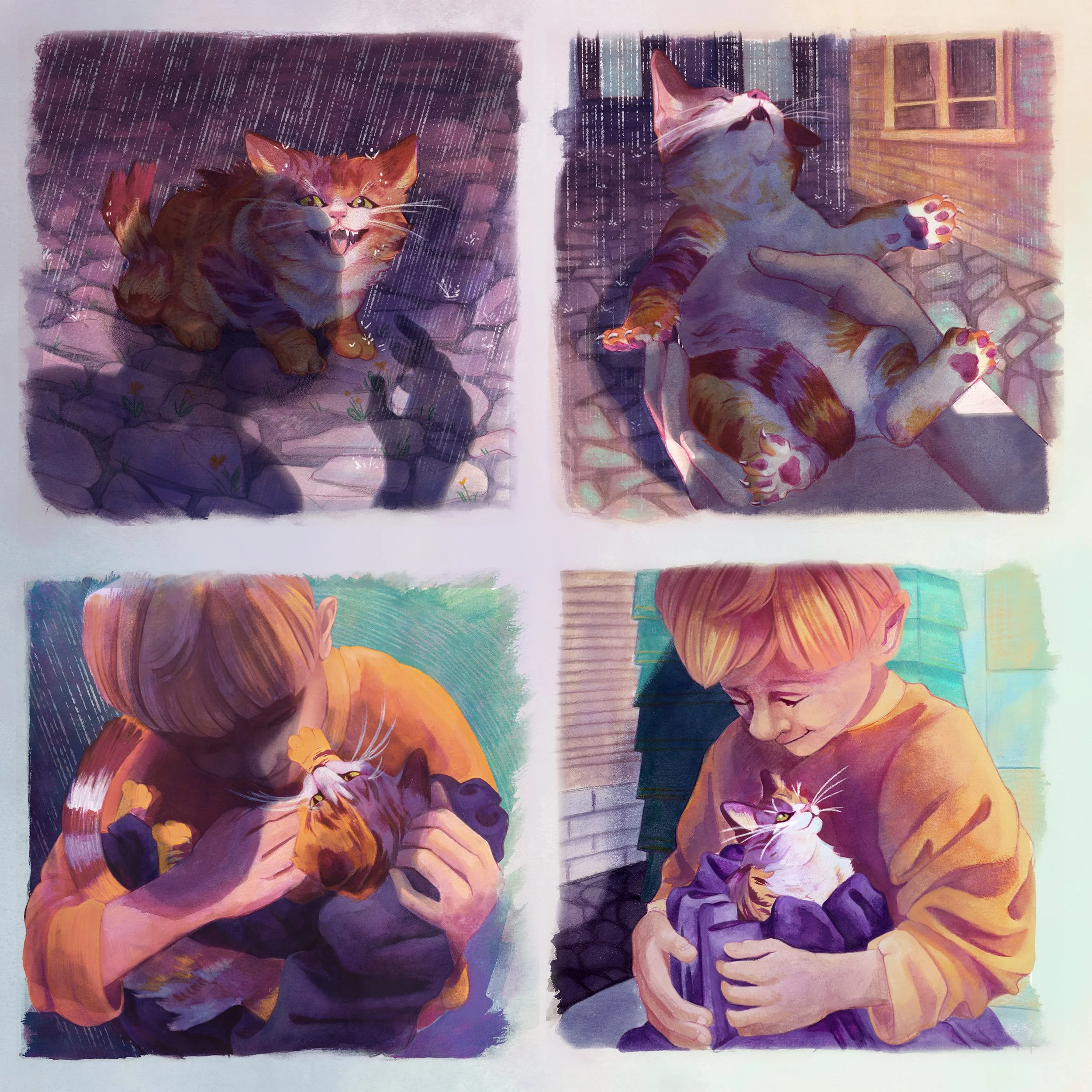 This four part illustration was produced for the Society of Children’s Book Writers and Illustrators annual Narrative Art Award. The prompt for 2025 was: "Because this is the quarter-century mark since the Y2K scare, tell a story about something that turns out not to be a threat.”