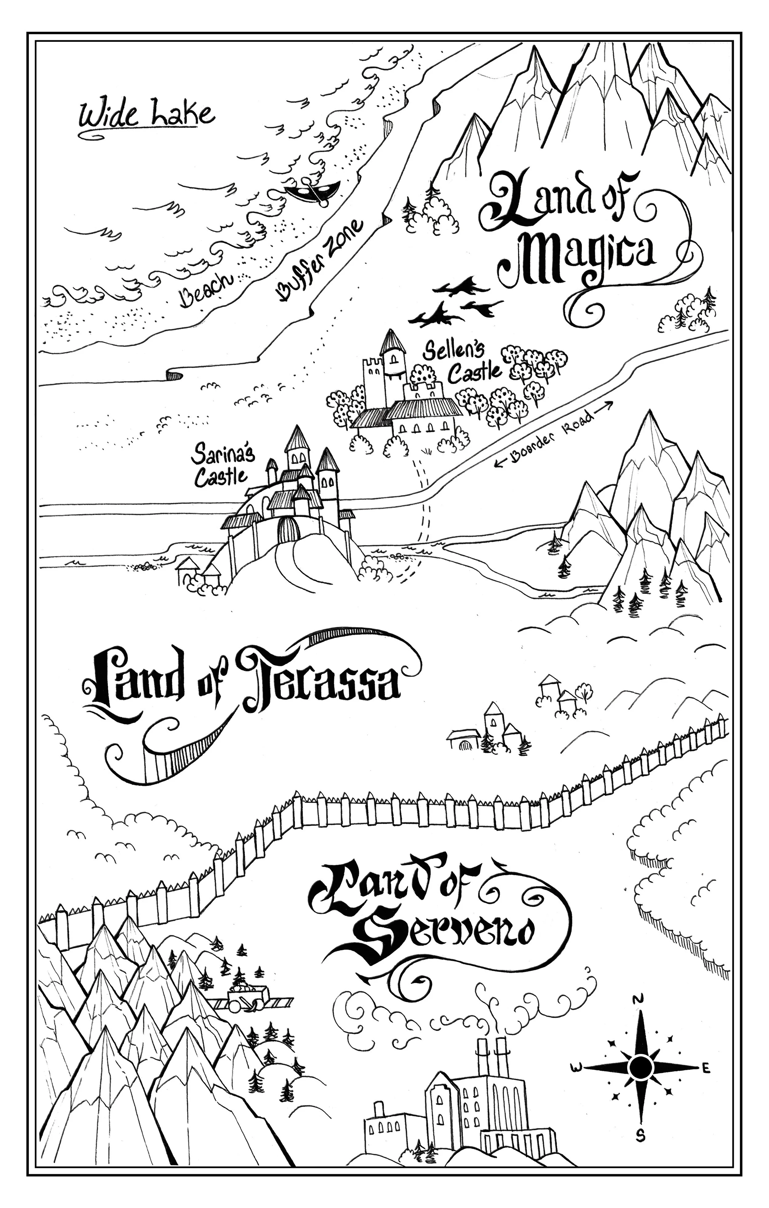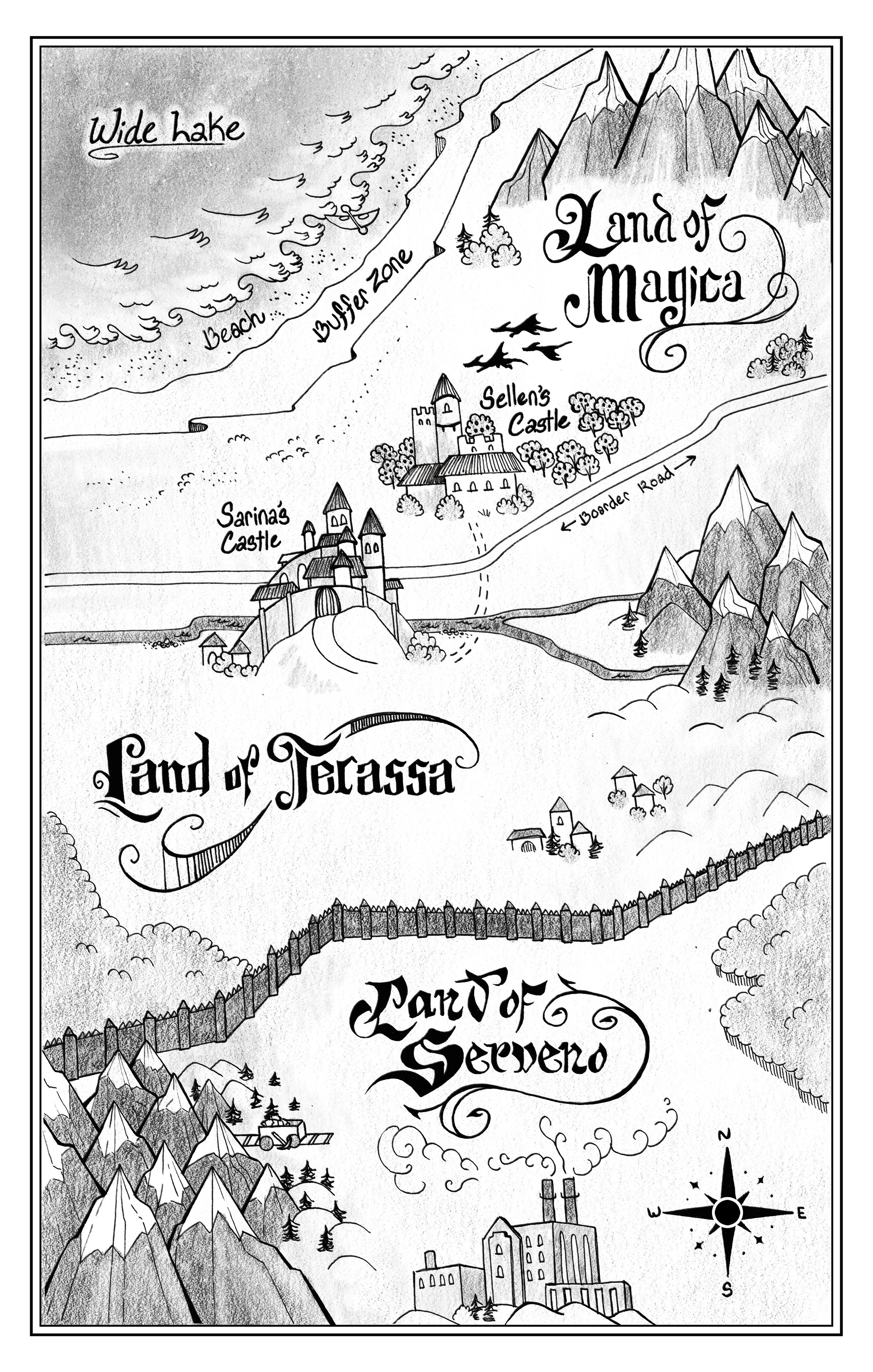 From the back cover: “In the Land of Terrasa, Sarina’s castle has been invaded, and she and her family are locked in their rooms. Sarina escapes to get help from Sellen in the Land of Magica. As a wizard’s apprentice, Sellen raised dragons. He and Sarina ride the dragons to an island that appears only when the moon is full to consult the High Wizard. Can Sarina and Sellen teach the dragons to breathe fire and save the world from evil forces?”